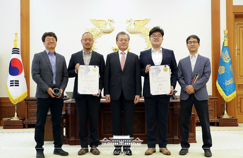 ▲사진(맨 왼쪽, 김용성 교수) 청와대 홈페이지우리 학교 김용성 교수(분자과학기술학과)가 200만번째 특허 발명자로 기록됐다. 청와대는 19일 문재인 대통령이 200만번째 특허증과 100만번째 디자인등록증 수여식을 열고 직접 등록증에 서명했다고 밝혔다. 김용성 교수는 200만호 특허증의 발명자로서 수여식에 초청받았다. 김용성 교수가 발명한 200만호 특허는 치료용 항체를 통한 종양억제 바이오 기술이다. 특허 제목은 '엔도좀 탈출구조(세포 내 흡입에 의해 만들어지는 막주머니) 모티프 및 이의 활용'이다. 해당 특허 기술을 활용한 ㈜오름테라퓨틱 이승주 대표가 200만호 특허권자로 특허증을 받았다. 청와대는 200만호 특허등록은 1946년 특허제도가 도입된 이후 73년 만의 성과로, 미국, 프랑스, 영국, 일본, 독일, 중국에 이어 세계 7번째라고 설명했다. 특히, 기존에 특허청장이 서명하는 기존 방식과 달리 대통령이 직접 특별증서에 서명하는 행사를 마련한 것은 미중 무역분쟁, 일본 수출규제 등 기술패권에 대응하고 기업인, 과학기술인들의 혁신 성과를 격려하기 위함이라고 덧붙였다. 문재인 대통령은 "우리가 1948년 제1호 특허가 된 이후 200만호 특허까지 70년 정도 걸렸다"며 "암 치료에 도움이 되거나 우리 국민들의 안전에 도움이 되는 기술과 디자인으로 200만호, 100만호를 기록했다"고 말했다. 김용성 교수(발명자)는 “특허는 곧 원천기술이라는 대통령의 말에 공감하고, 그래서 기술 개발 지원도 활발히 이뤄지고 있는 것으로 알고 있다"며 "하지만 일각에서는 특허의 중요성을 인식하지 못하는 경우가 많아 특허 인식 교육이 필요하다"고 강조했다. ▲사진, 청와대 홈페이지