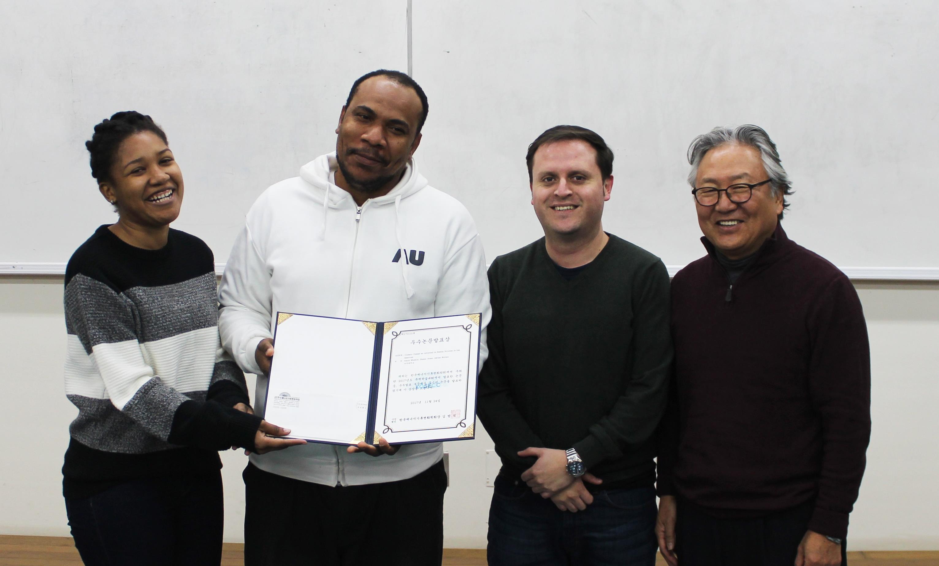 2017학년도 2학기 아경장학재단 장학증서 수여식이 21일 율곡관 영상회의실에서 열렸다. 올 2학기에는 27명의 학생이 아경장학재단 장학생으로 선정됐다.이날 행사에는 김형균 아경장학재단 이사장을 비롯한 아경장학재단 이사진과 유희석 총장직무대행을 비롯한 우리 학교 관계자들이 참석했다. 김형균 아경장학재단 이사장은 선발된 장학생들에게 장학증서를 전달하고 격려했다. 이번 학기에는 총 27명의 학생에게 6500만원 상당의 장학금 혜택이 돌아갔다. 아경장학재단은 경영대학원 총동문회가 2007년 설립한 장학재단으로 그동안 학생 장학금과 학술 세미나 지원, 연구 지원, 교육여건 개선 등을 위해 우리 학교에 꾸준히 기부해왔다.◆아경최고장학 박새벽(법학전문대학원), 주정운(화학공학과), 이성훈(소프트웨어학과), 최두헌(수학과), 노윤지(경영학과), 이은영(국어국문학과), 박찬비(심리학과), 이건형(의학과), 임준아(간호학과)◆아경비전장학국종화(경영대학원), 조은별(경영대학원)◆글로벌장학Timbate Lukas Beyashe(대학원 경영학과), Haile Teggne Tesfaye(대학원 경영정보학과), 리우위첸(경영학과), 왕이(경영학과), 유운비(경영학과), 주영걸(경영학과), 조증군(경영학과), 만주라(경영학과), 바야르(경영학과), 반월(경영학과), 황나(경영학과), 이몽팅(경영학과)◆일반장학NAVARAJ BASNET(대학원 경영학과), 최지훈(경영대학원)◆석사52기 장학이지헌(경영학과), 노영지(e-비즈니스학과)