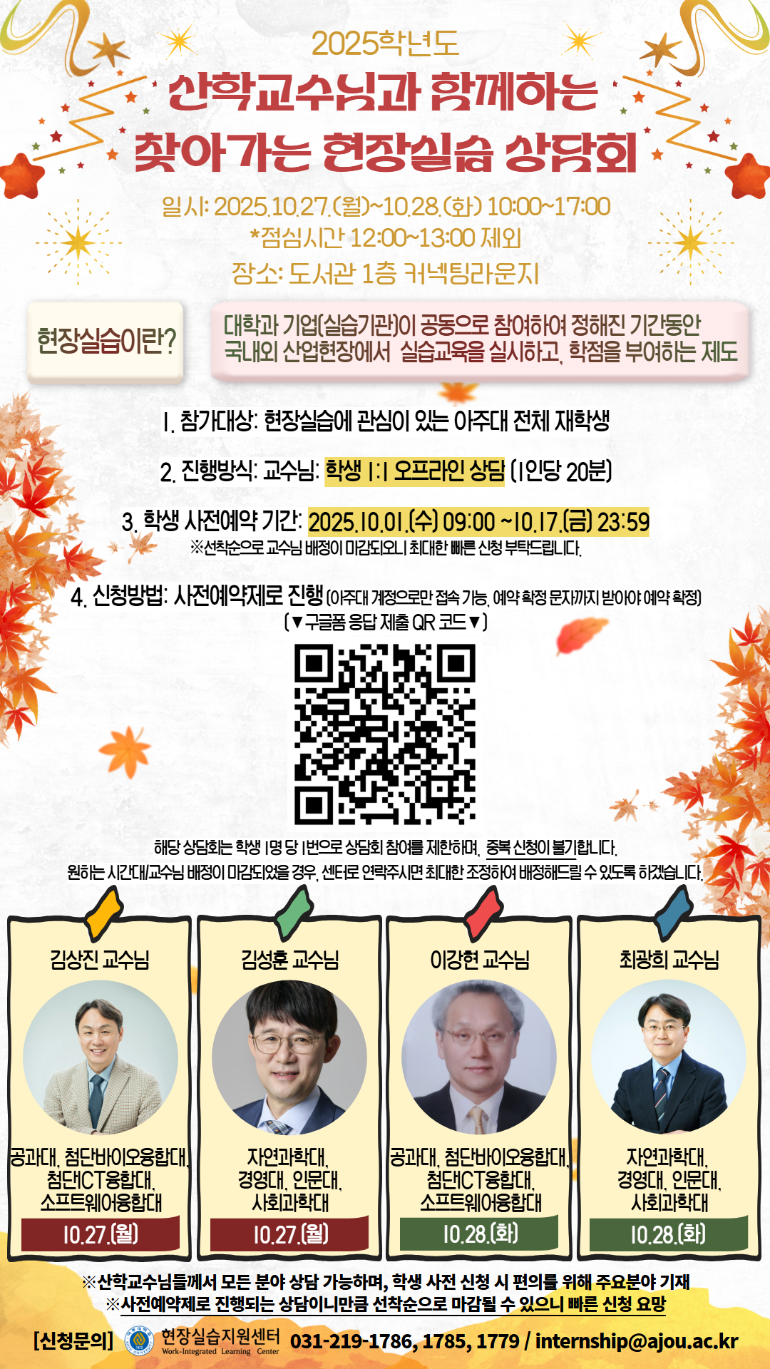 [재공지] [RISE] 🍁2025 산학교수님과 함께하는 "찾아가는 현장실습 상담회" 사전예약 안내 (★~오늘까지 ) 🍂
