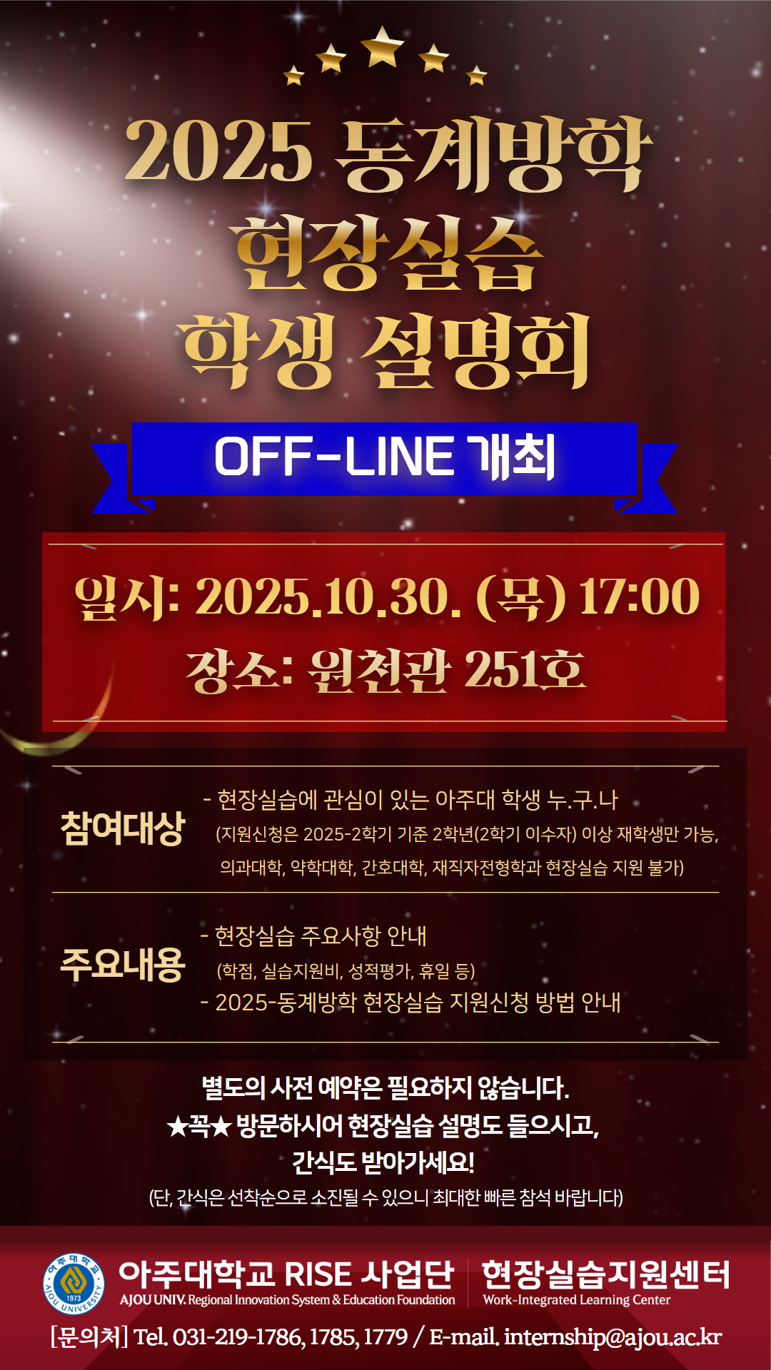 [RISE] 2025-동계방학 현장실습 오프라인 학생 설명회 안내(★2025.10.30.(목) 17시)