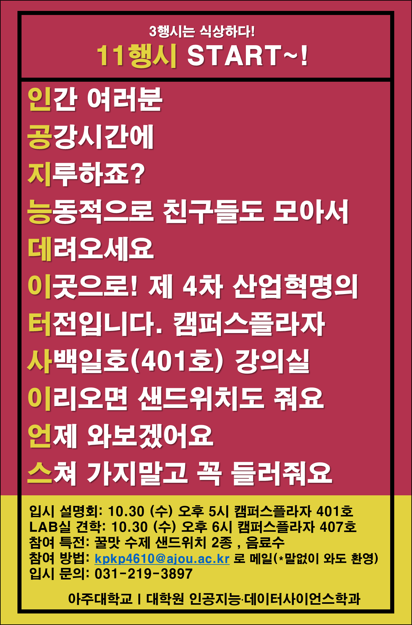 | 9036 | 입학 | 인공지능데이터사이언스학과 | 2019-10-24 | ||