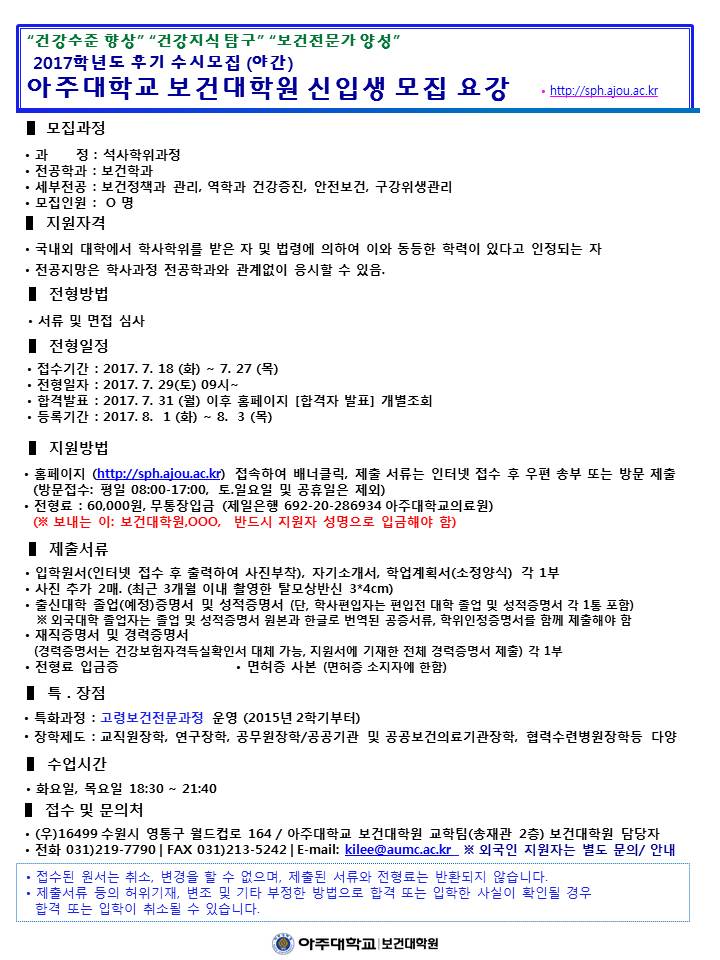 | 4102 | 입학 | 보건대학원교학팀 | 2017-07-17 |