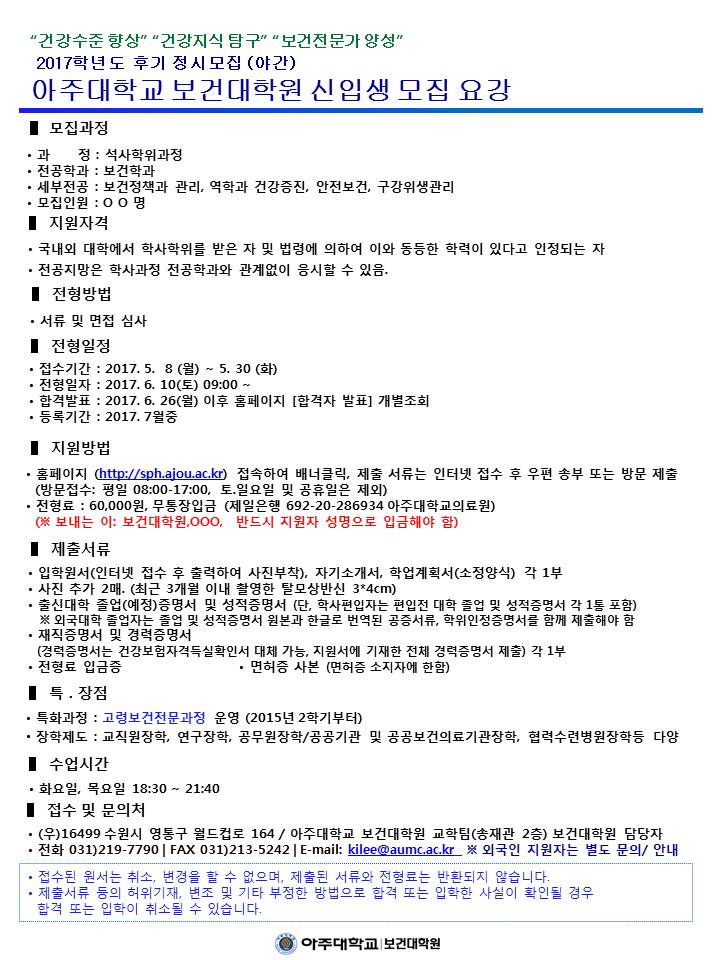 | 3622 | 입학 | 보건대학원교학팀 | 2017-05-02 | ||