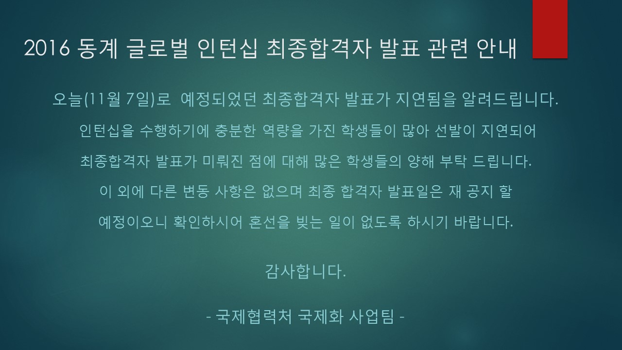[글로벌 인턴십] 2016 동계 선발 합격자 발표 관련 안내