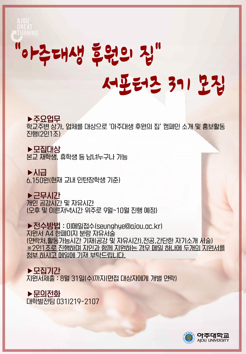 [대학발전팀] '아주대생 후원의집' 서포터즈 3기 모집
