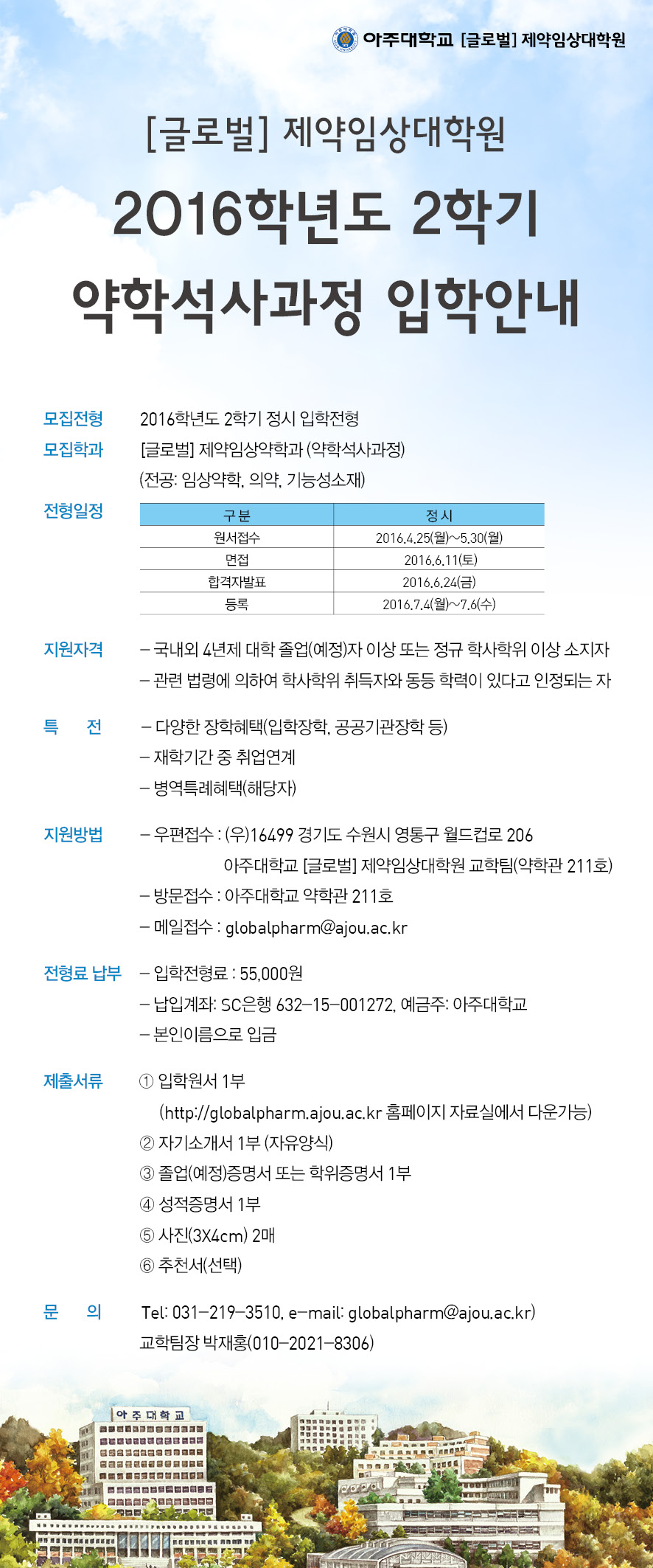 | 1718 | 입학 | 글로벌제약임상대학원 | 2016-04-21 | ||