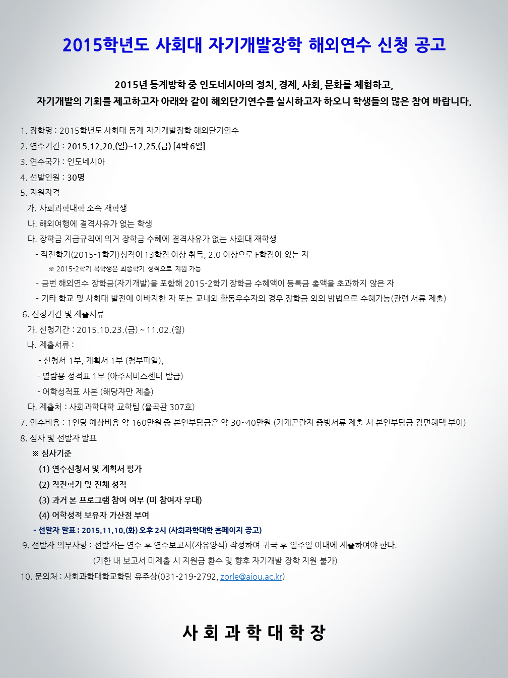| 1026 | 장학 | 사회과학대학교학팀 | 2015-10-23 |