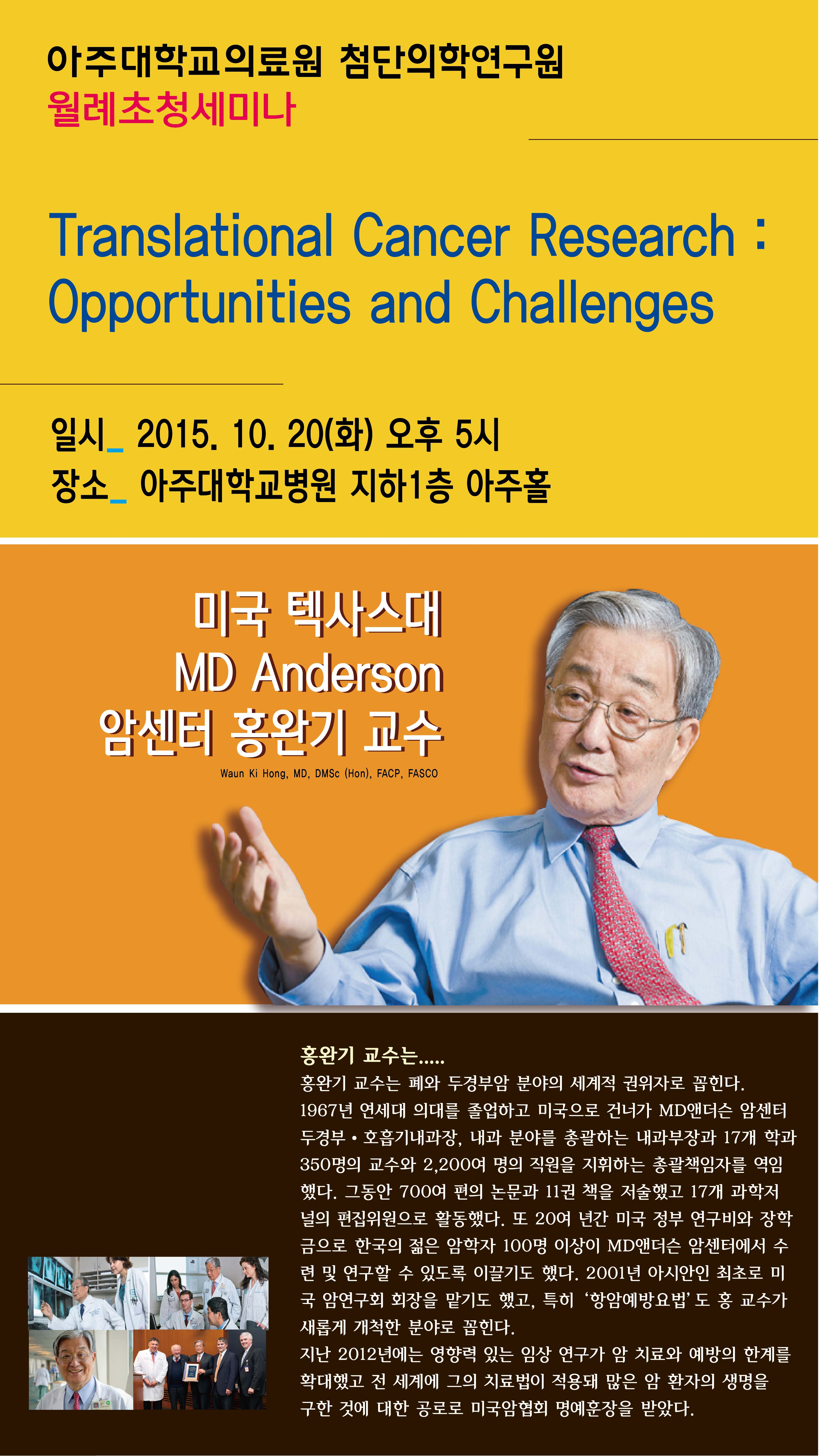 [첨단의학연구원 월례초청세미나] MD Anderson 홍완기 교수