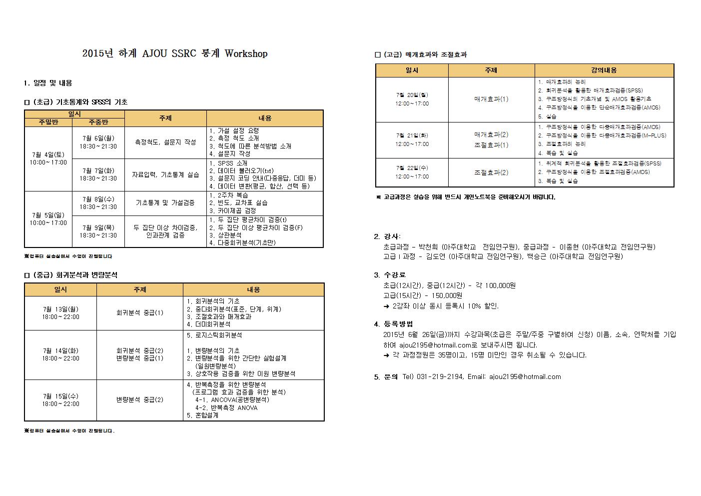 [통계특강] 2015년 하계 Ajou – SSRC 통계 Workshop 안내