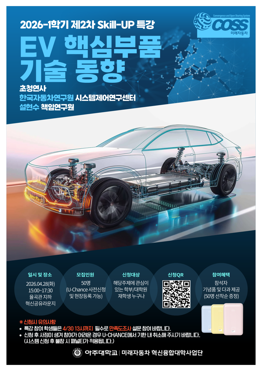 [비교과] [미래자동차 Skill-UP 특강] "EV 핵심부품 기술 동향" 신청 안내