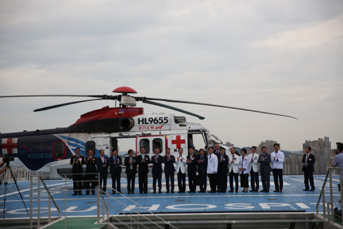 박형주 총장은 9월 6일 아주대학교 병원 15층 헬리패드에서 열린 닥터헬기 런칭식에 참석하였다. 인사말 하는 박형주 총장우리 학교 의료원이 닥터헬기 운항 시작을 알렸다.경기남부권역외상센터인 우리학교 의료원은 7번째 닥터헬기 출범식을 6일 개최했다. 우리 학교 의료원이 도입한 닥터헬기는 다른 권역에 도입된 6대와 달리 전국 최초로 24시간 운영된다. 행사에는 닥터헬기 도입에 앞장선 이국종 교수를 비롯해 유희석 의료원장, 박형주 총장, 박능후 보건복지부 장관, 김희겸 행정1부지사, Harry Harris 주한 미국대사, Michael Bills 미8군 사령관, 라울 코임브라 교수 등이 참석했다. 이국종 교수를 단장으로 한 은 닥터헬기를 활용해 예방가능 외상사망률을 줄이고, ▲경기 남‧북부 권역외상센터 지원 ▲예방가능외상사망 평가 ▲조사 및 개선방안 도출 ▲위기대응 수준 향상을 위한 소방·의료인력 교육 훈련 등을 통해 닥터헬기 운영 효율성을 높일 전망이다.앞서 우리 학교 의료원은 지난해 7번째 닥터헬기 운영소로 선정된 이후 응급환자를 효율적 치료를 위해 새로운 운영 방식을 시범사업으로 준비했다. 이에 따른 결과로 우리 학교 닥터헬기는 24시간 출동 대기하고, 구조 활동도 병행하게 됐다. 특히 고속도로에서 발생한 교통사고, 실족에 따른 추락사고 등으로 인한 중증외상환자를 구조해 병원이송 임무를 수행할 예정이다. 소방본부 구조대원 6명은 아주대학교로 파견돼 구조현장에 함께 출동하게 된다.이국종 교수는 "새로운 닥터헬기가 DMZ(비무장지대)부터 남해 섬등과 동해까지 대한민국 구석구석을 커버해 외상환자들의 생명을 구할 수 있는 기회를 줄 것 같다"며 "전국 외상의료 체계에 포함됐으면 좋겠다"고 말했다. 이어 이 교수는 "헬기 곳곳에 고(故) 윤한덕 센터장을 기리는 '아틀라스'를 새겼다"며 "그의 희생정신을 따르겠다"고 덧붙였다. 2011년 9월 운항을 시작한 닥터헬기는 올해 8월 말까지 약 9000번 출동해 환자 8300여 명을 이송했다. 우리 학교 의료원 닥터헬기는 전국에서 처음으로 중증외상환자 이송체계 구축을 위한 24시간 닥터헬기 1호로 지난달 31일부터 운항을 시작했다.