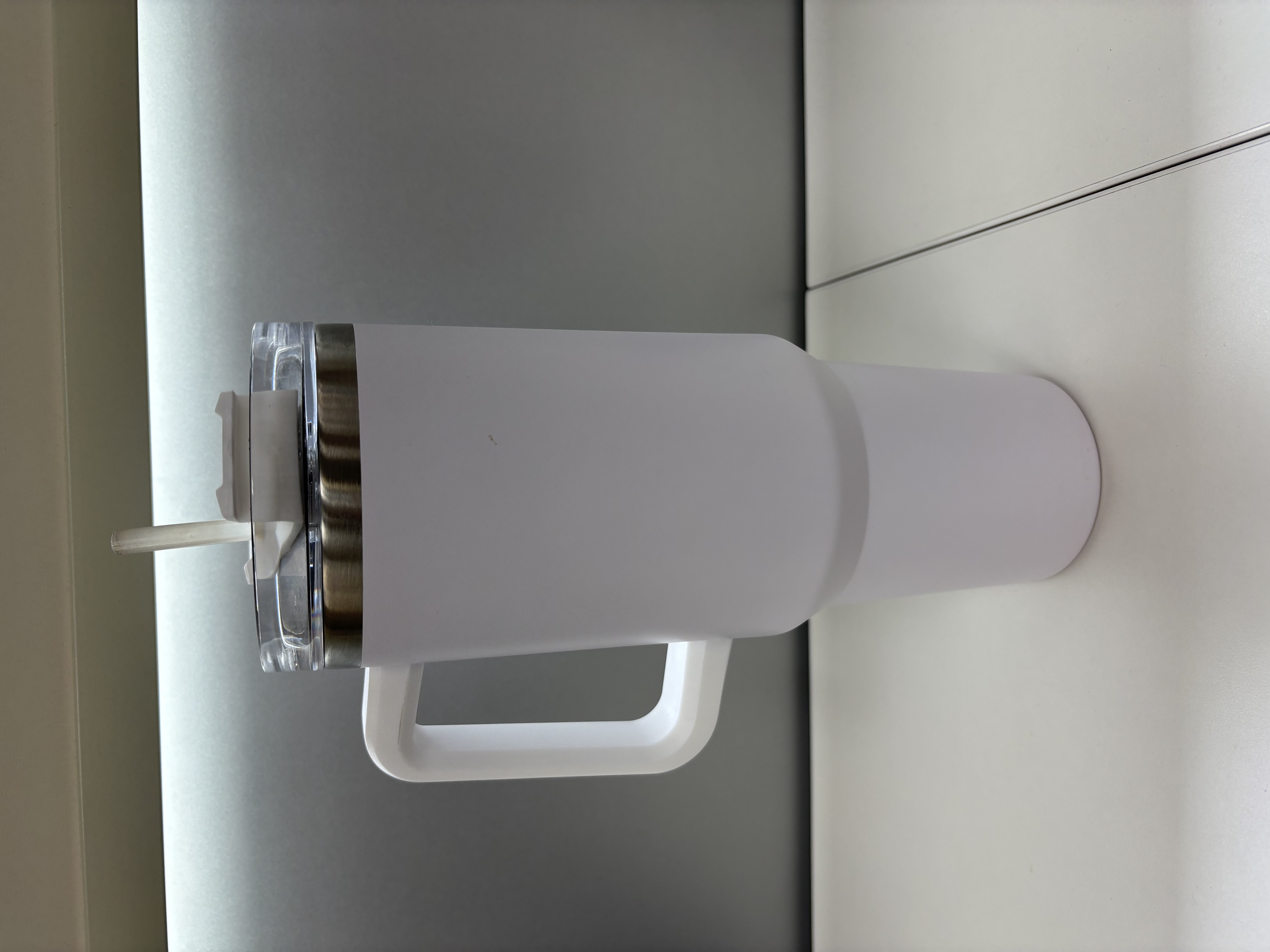 쿠로미케이스를 낀 블루투스이어폰, 체크카드, 물통과 옷들이 들어있는 쇼핑백